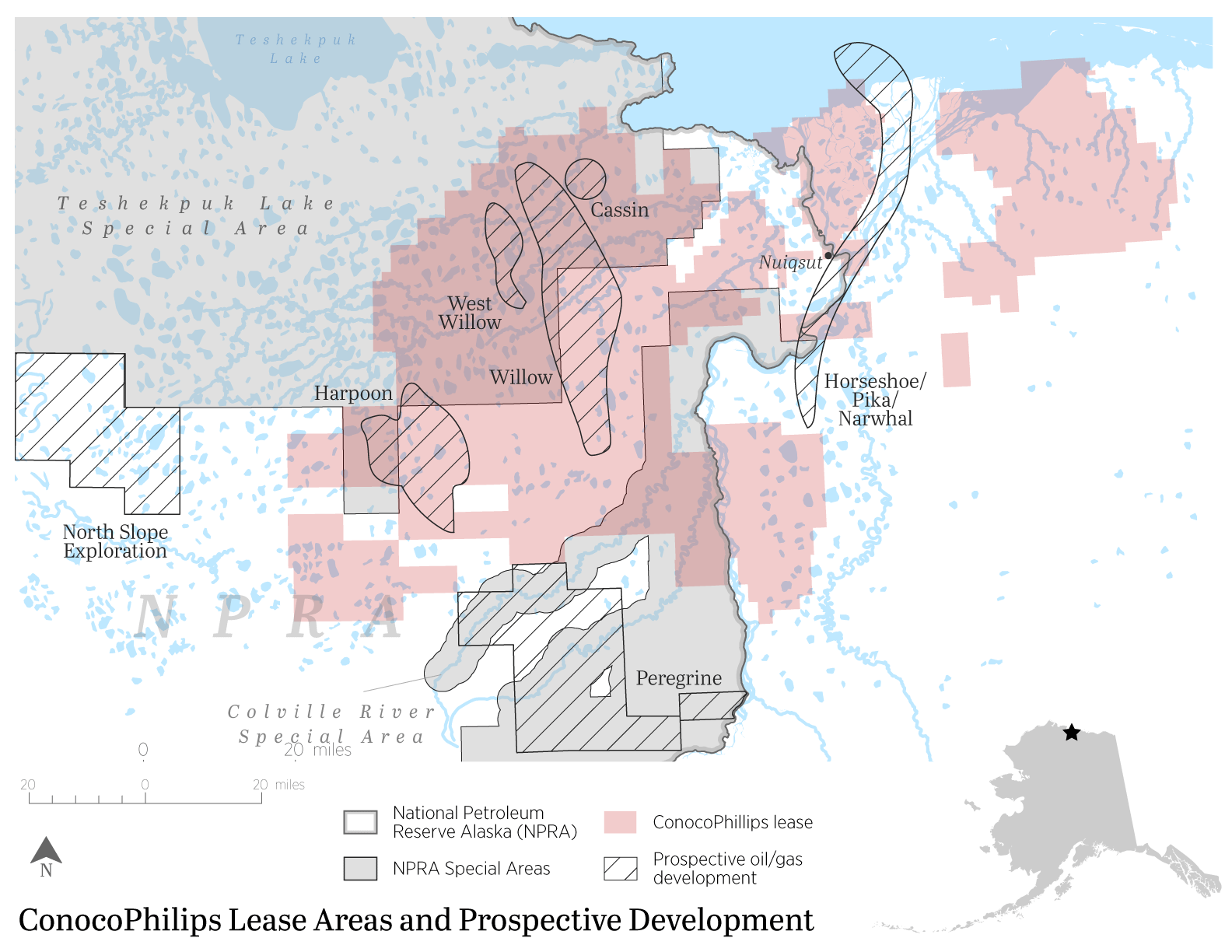- In November 2019, ConocoPhillips released a resource estimate of 450 million to 800 million barrels of oil equivalent for the Greater Willow Area.